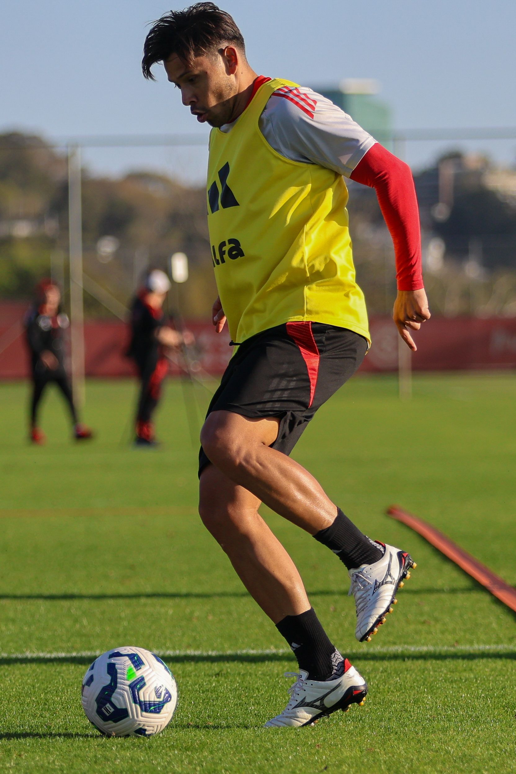 O treinador Roger Machado, junto da comissão, organizou atividades físicas e técnicas no gramado. A equipe tem mais um treino pela frente para finalizar a preparação e viajar para Belo Horizonte.